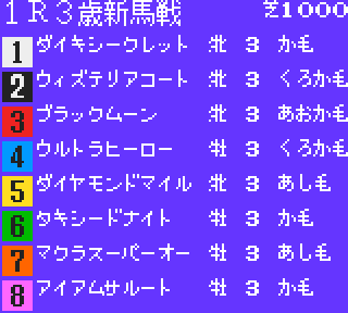 | 名前 | 性齢 | 毛 | スピード | スタミナ | 瞬発力 |