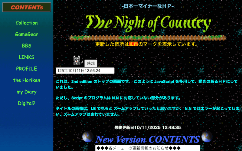 過去の記録によると、この頃にサイト名を「田舎の夜」に変更したらしいが全然記憶にない。