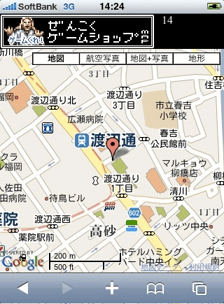 ガラケーでは現在地から近い順に中古屋を一覧表示していたが、