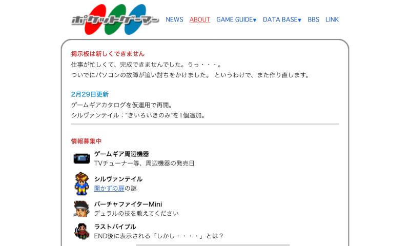 ここはポケットゲーマーのサイト変遷の記録です(ほぼ管理人の振り返り用ページです)。